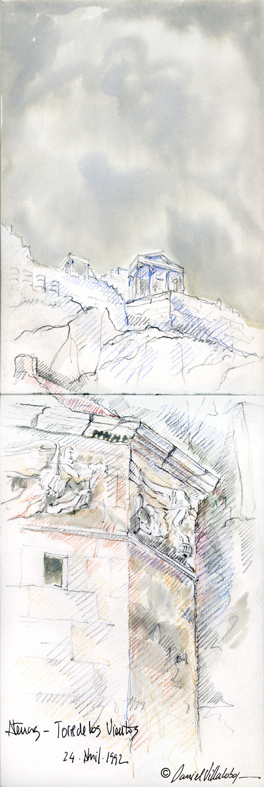 CUADERNO DE DIBUJOS DE VIAJE − Daniel Villalobos Alonso − Grecia (Greece). 1992 – (Travel Sketchbook)
