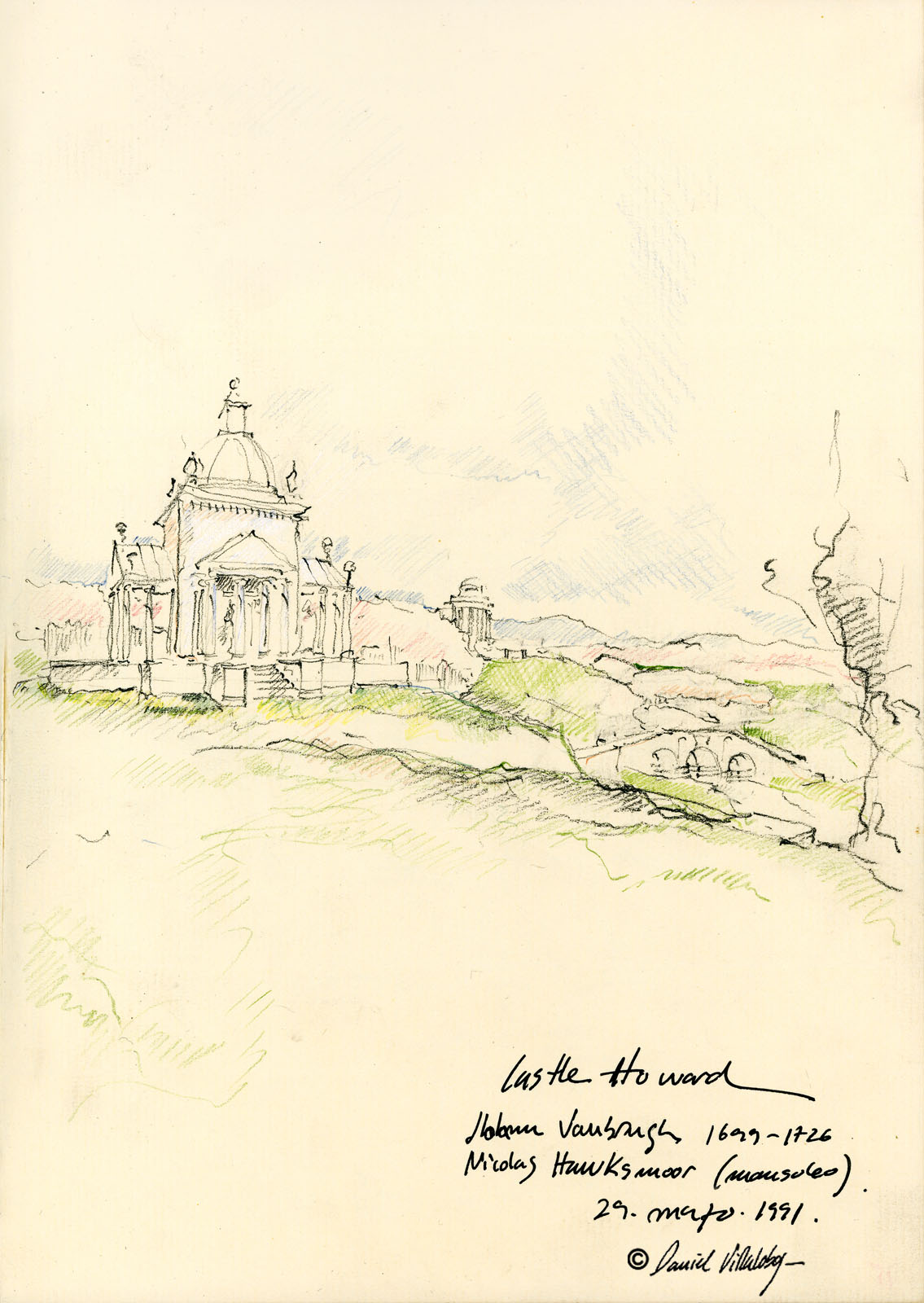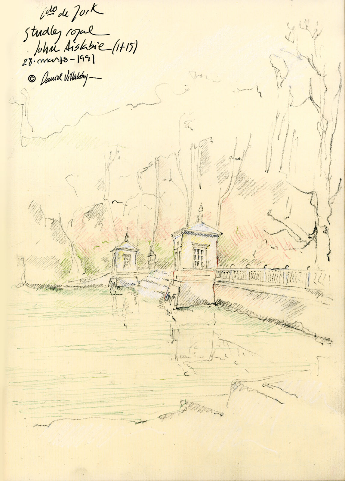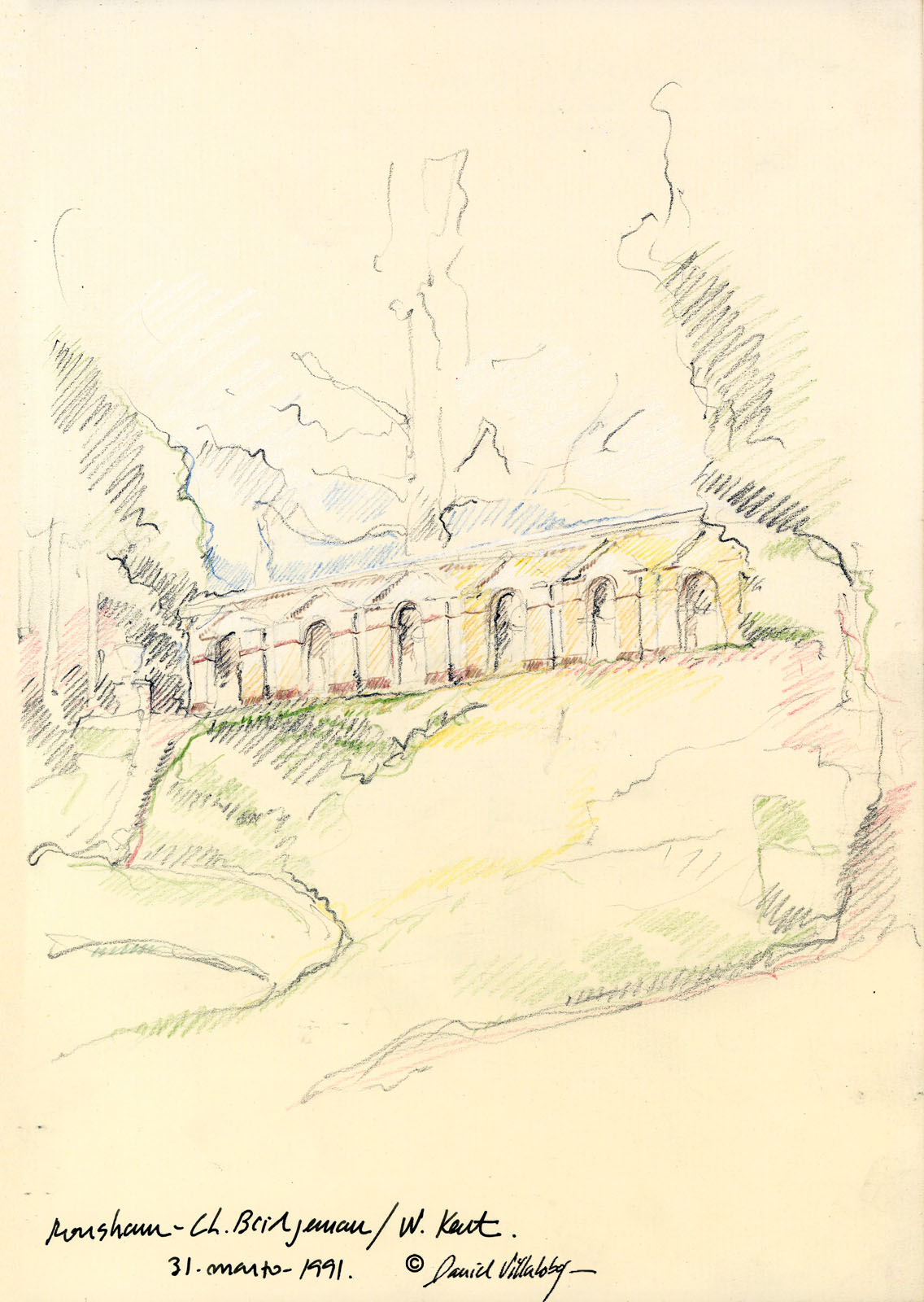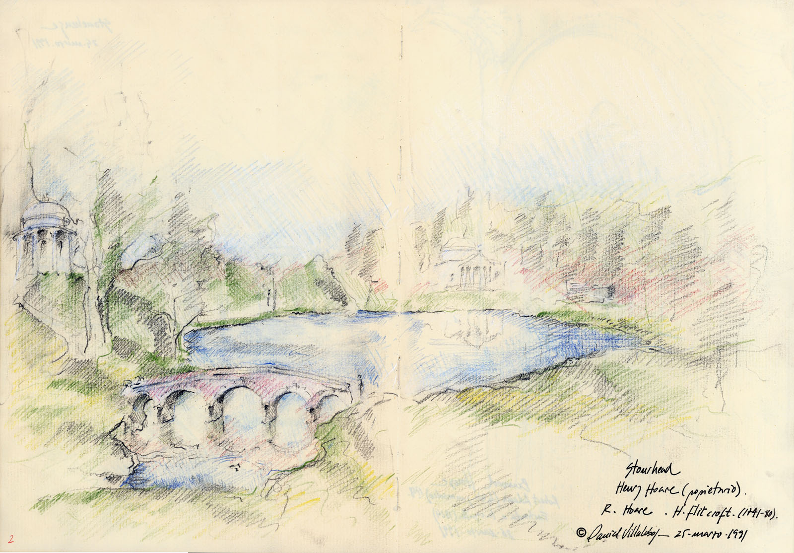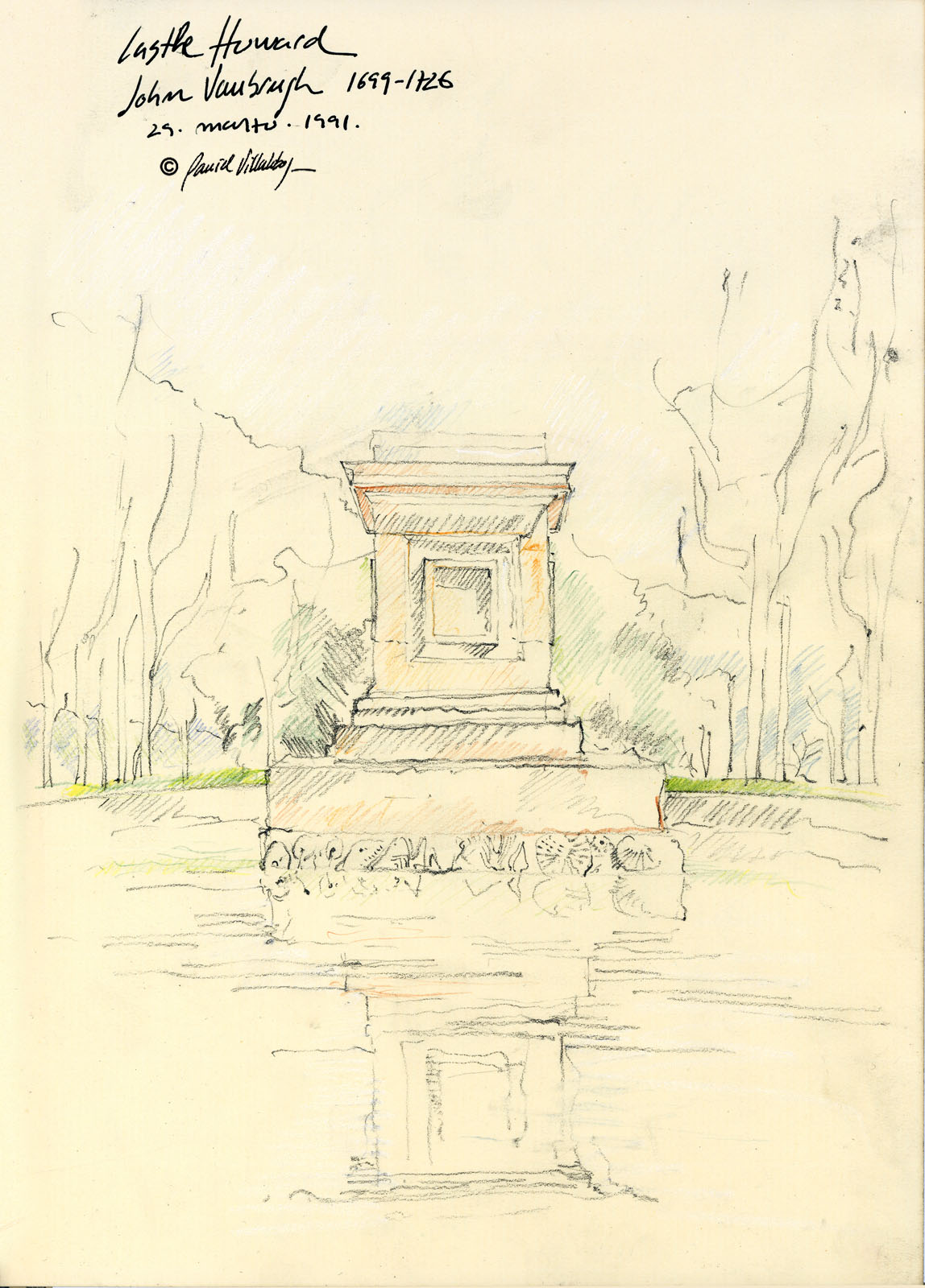 INGLATERRAJARDINES DE STOWE. ARQS. CHARLES BRIEDGMAN Y JOHN VANBRUGH (1713-1738). WILLIAM KENT (1738-1748). LANCELOT “CAPABILITY” BROWN (1748). BUCKINGHAMSHIRE, INGLATERRA (ENGLAND). [Descripción: “Stowe. 1713-38 Ch. Briedgman / John Vanbrugh. W. Kent (1738-48) / L. Brown (1748). 31-marzo-1991.” Lápices de colores [29,7 x 21 cts.]. © Daniel Villalobos Alonso]