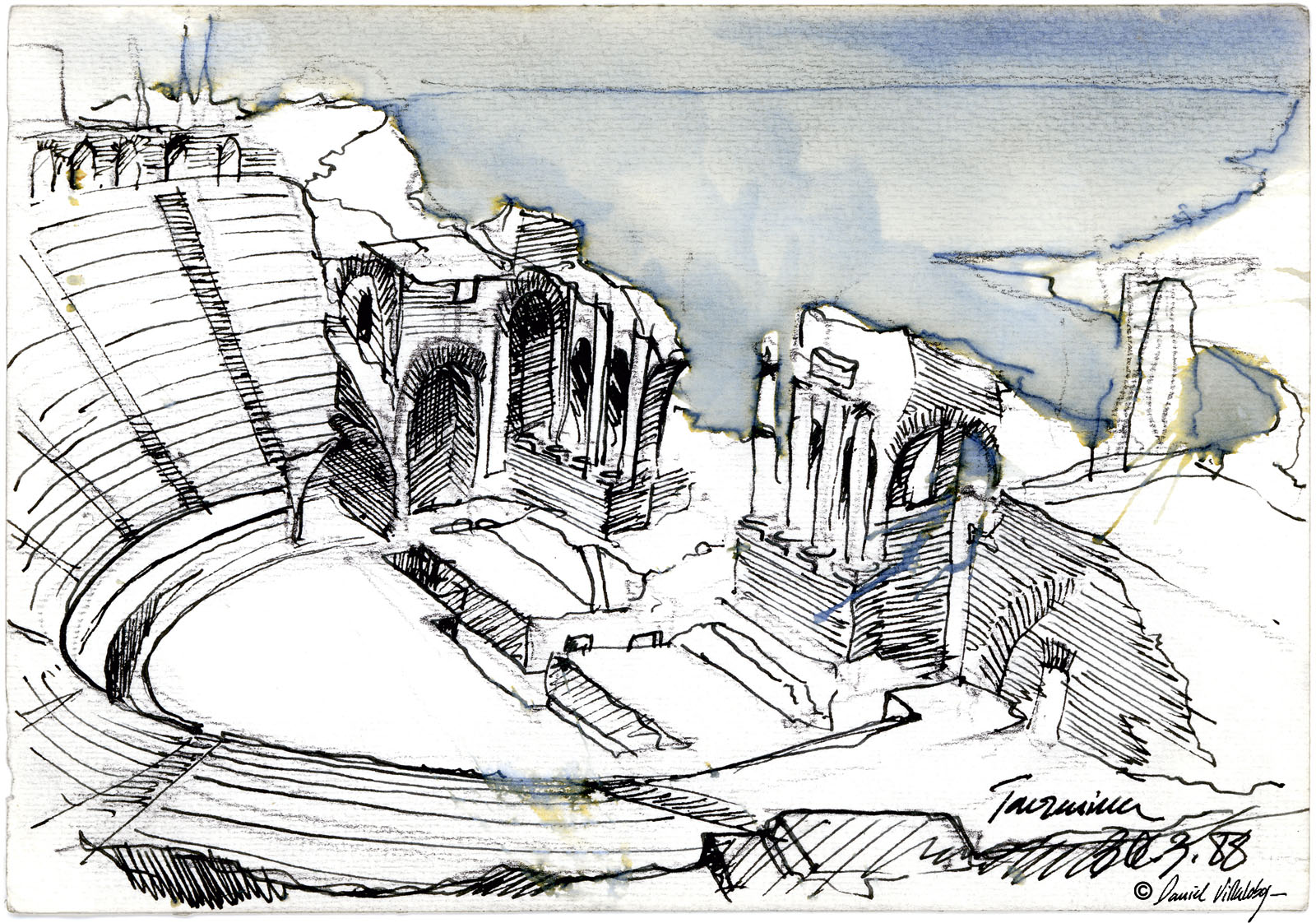 CUADERNO DE DIBUJOS DE VIAJE − Daniel Villalobos Alonso – Italia-Sicilia (Italy-Sicily). 1988 – (Travel Sketchbook)