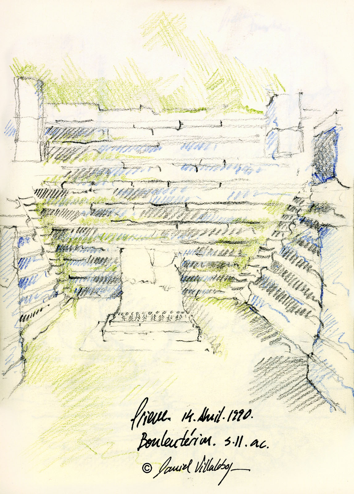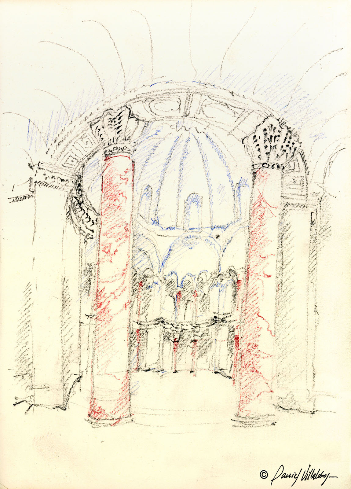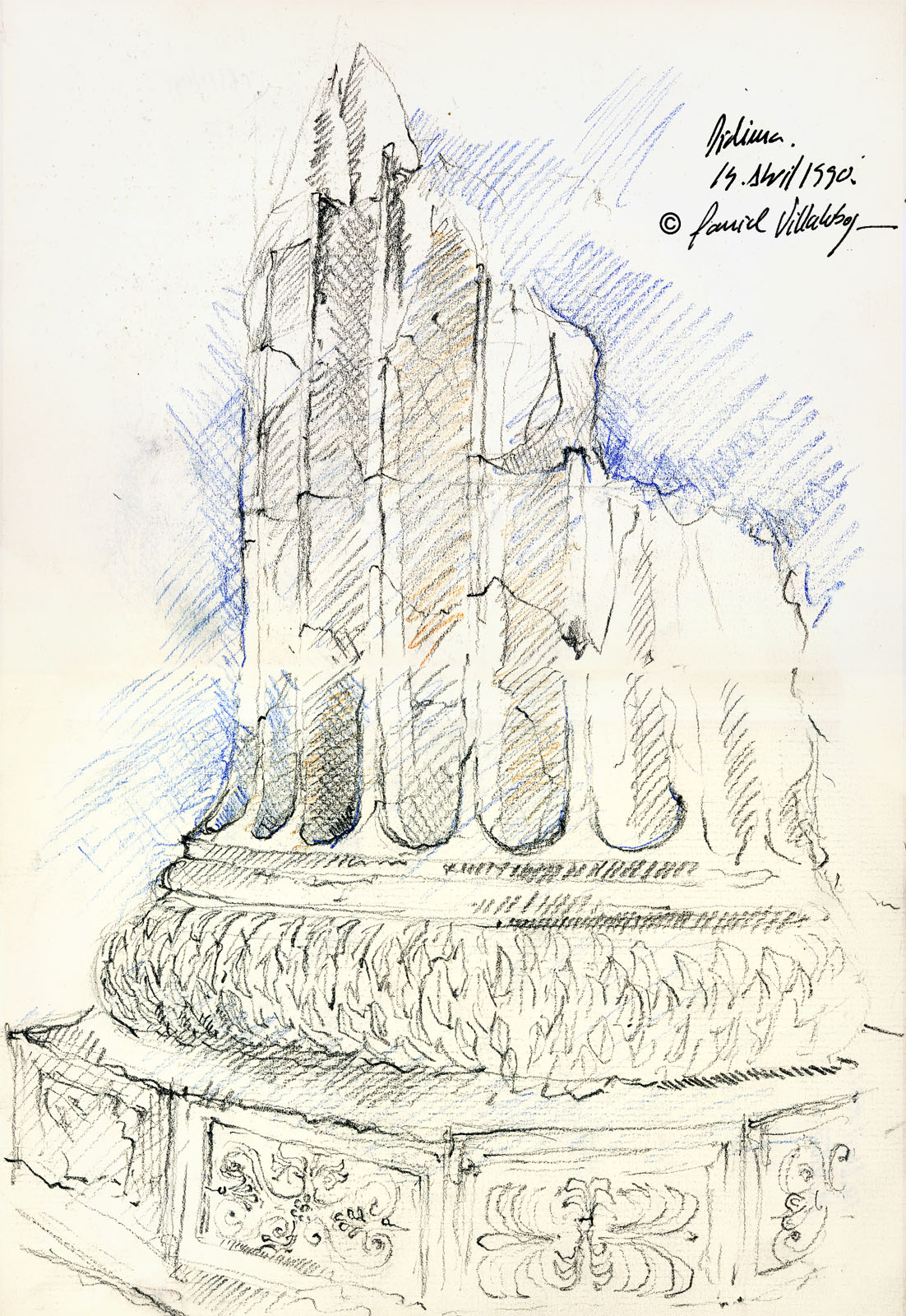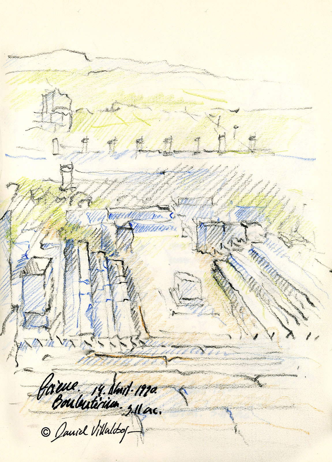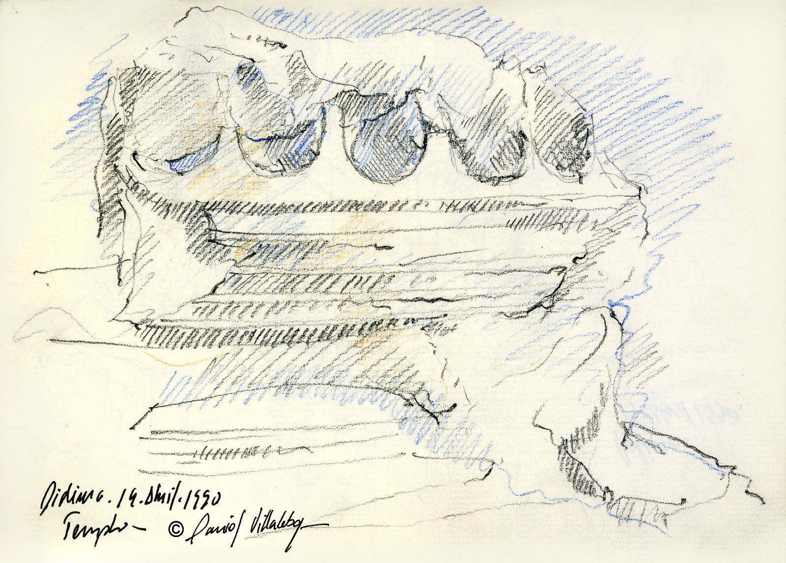 TURQUÍACAPITEL JÓNICO. TEMPLO DE ARTEMISA (S. II A.C.). MAGNESIA DE MEANDROS. MUSEO ARQUEOLÓGICO DE ESTAMBUL (TURKEY). [Descripción: “Templo de Artemisa. s. II. ac. Capitel jónico de Magnesia de Meandros. Arqueológico de Estambul. 17-Abril-1990. Para Mariángeles.” Lápices de colores [21 x 14,5 cts.]. © Daniel Villalobos Alonso]